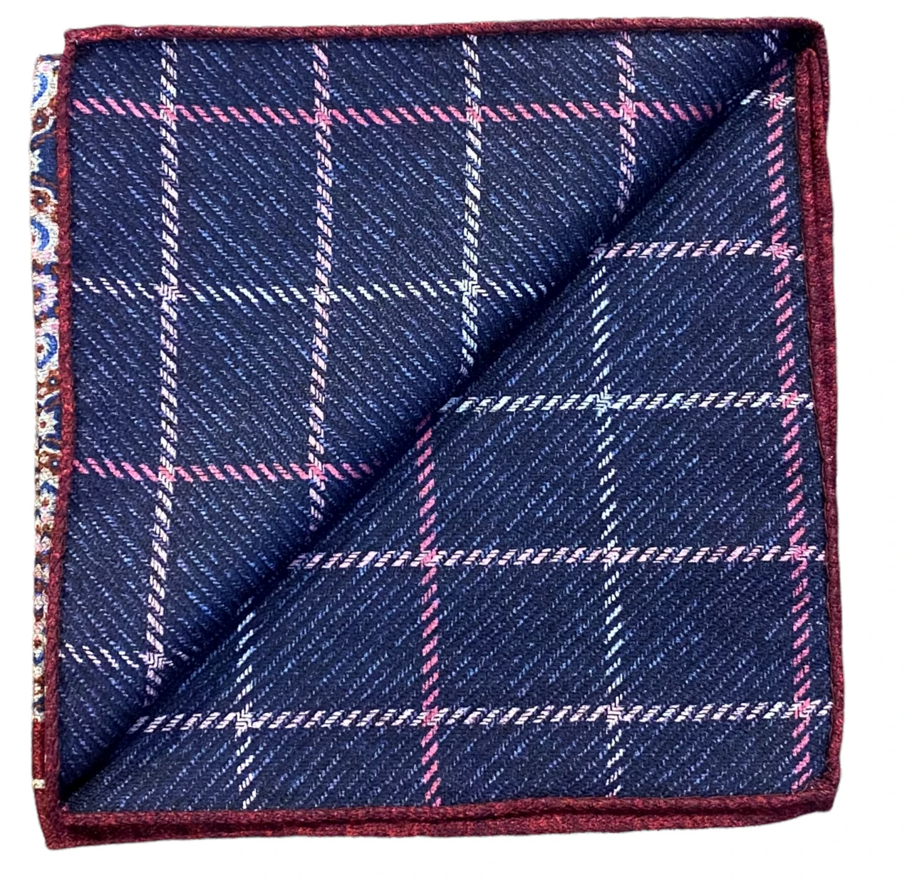 R Hanauer Reversible Medallion Windowpane Pocket Square: Navy